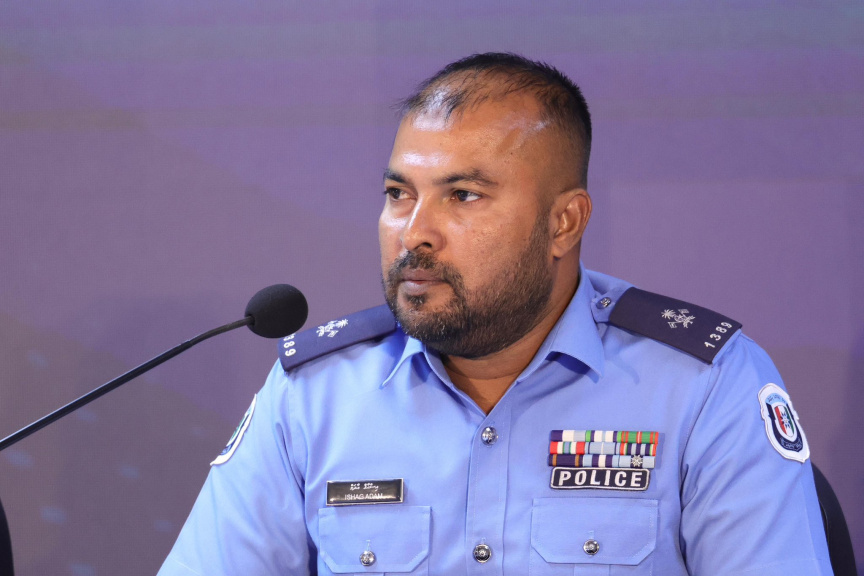 Head of Gang Crimes Enforcement, Superintendent of Police Ishaq Adam speaks at a police press conference on December 30, 2025. (Photo/Maldives Police Service)