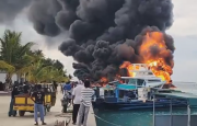 The Maldives National Defense Force (MNDF) states that firefighters from the F. Nilandhoo Fire Station have been deployed to the scene, while police state they are also working with other relevant authorities to contain the fire.