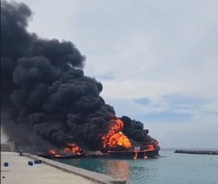 The fire on the fuel boat was reported to the authorities at around 09:15 am.